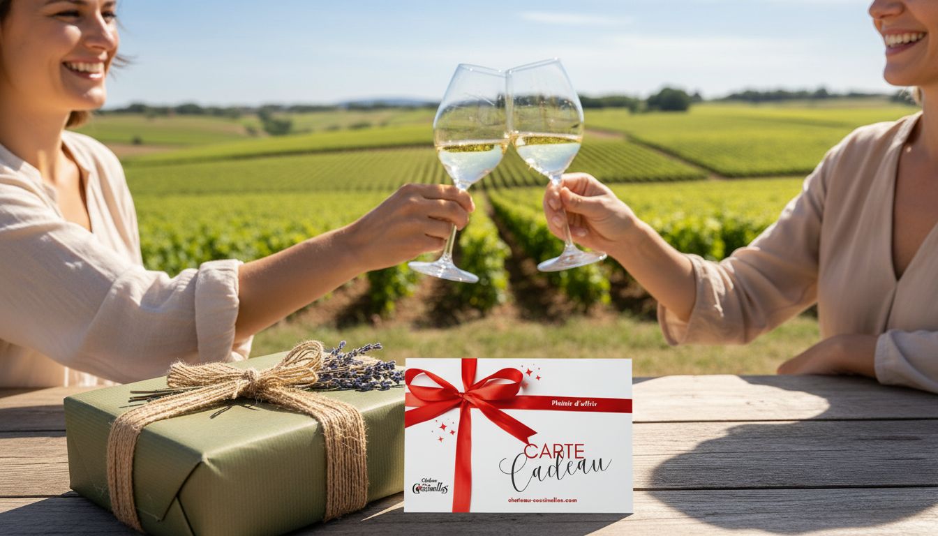 Au Château des Coccinelles, nous avons imaginé des cadeaux qui ont du sens : des coffrets de vins bio et vegan issus de nos vignes en Côtes du Rhône, des expériences œnologiques à vivre sur le domaine, et des cartes cadeaux pour laisser toute liberté au destinataire. Que vous cherchiez une idée cadeau pour un anniversaire, une occasion spéciale ou simplement faire plaisir, vous êtes au bon endroit.